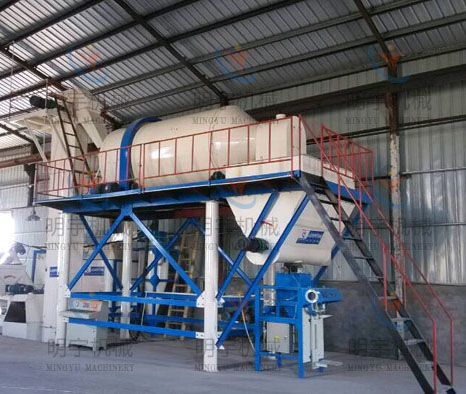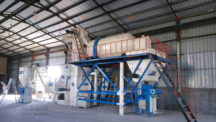 該生產(chǎn)線為雙配套生產(chǎn)設(shè)備,即砂漿混合及?;⒅榛旌稀F渲?,砂漿混合采用臥式無重力攪拌機(jī),混合水泥、沙子、添加劑等,具有混合時(shí)間短、均勻度高的優(yōu)點(diǎn)。無軸滾筒式?;⒅閷S没旌蠙C(jī),內(nèi)部機(jī)構(gòu)設(shè)計(jì)獨(dú)特,能保證物料在原始狀態(tài)下均勻混合,同時(shí)將破損率降低。該配套設(shè)備是目前生產(chǎn)單組份無機(jī)保溫砂漿較為科學(xué)合理的生產(chǎn)模式。