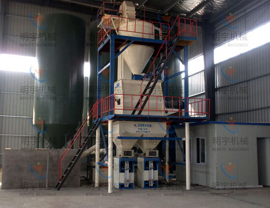 該生產(chǎn)線為兩層平臺(tái)模式,創(chuàng)造性的設(shè)計(jì)了原料待混倉(cāng),即原料在進(jìn)行攪拌混合時(shí),下一批原料同時(shí)提升至待混倉(cāng)等待混合,節(jié)省了原料提升時(shí)間,極大的提高了生產(chǎn)效率。本設(shè)備要求廠房高度在8.5-9.0米之間,3-4人即可生產(chǎn)。具有占地小、產(chǎn)量大、設(shè)備高端大氣等優(yōu)點(diǎn)。